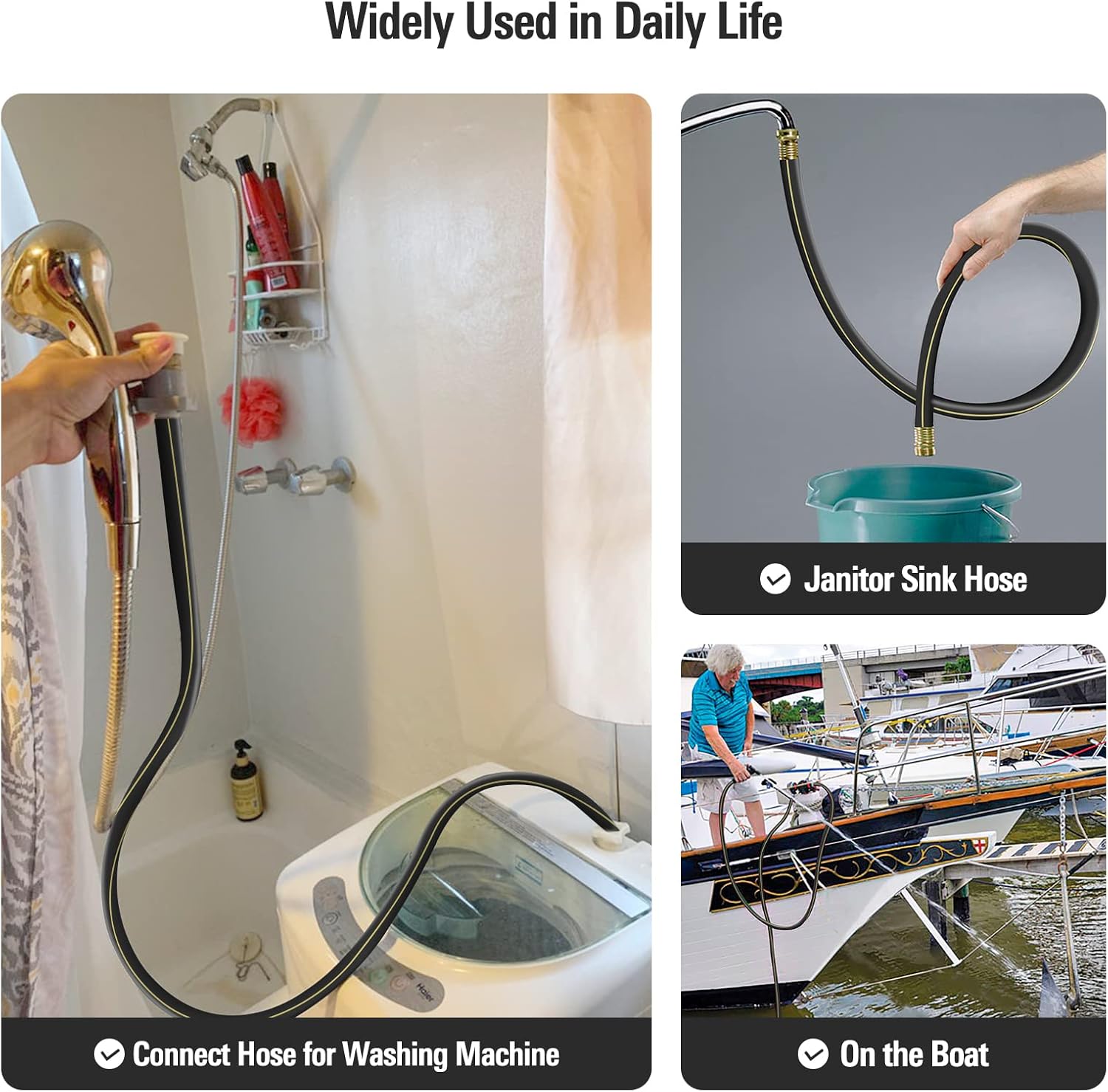- Multifunctional: Available in various sizes, this product is ideal for a wide range of applications, including hose reel carts, RVs, dehumidifier hoses, laundry tub hoses, water softeners, washing machines, rain barrel drain hoses, short water hoses for pool cover pumps, and drain hoses for fishbowls and sinks; It effectively directs water to your bucket while minimizing splashing and mess