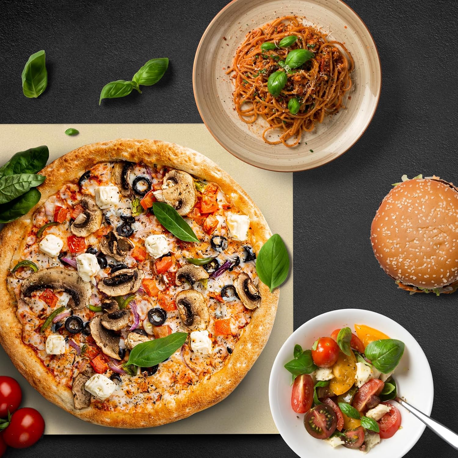 - Food Grade Materials: Pizza Baking Stone is made of ceramic. It will not be damaged even at 1400 ℉. Excellent craftsmanship provides excellent strength, durability, heat preservation, and thermal shock resistance, making it a artwork. Long service life. For family and friends, and nobody can refuse it