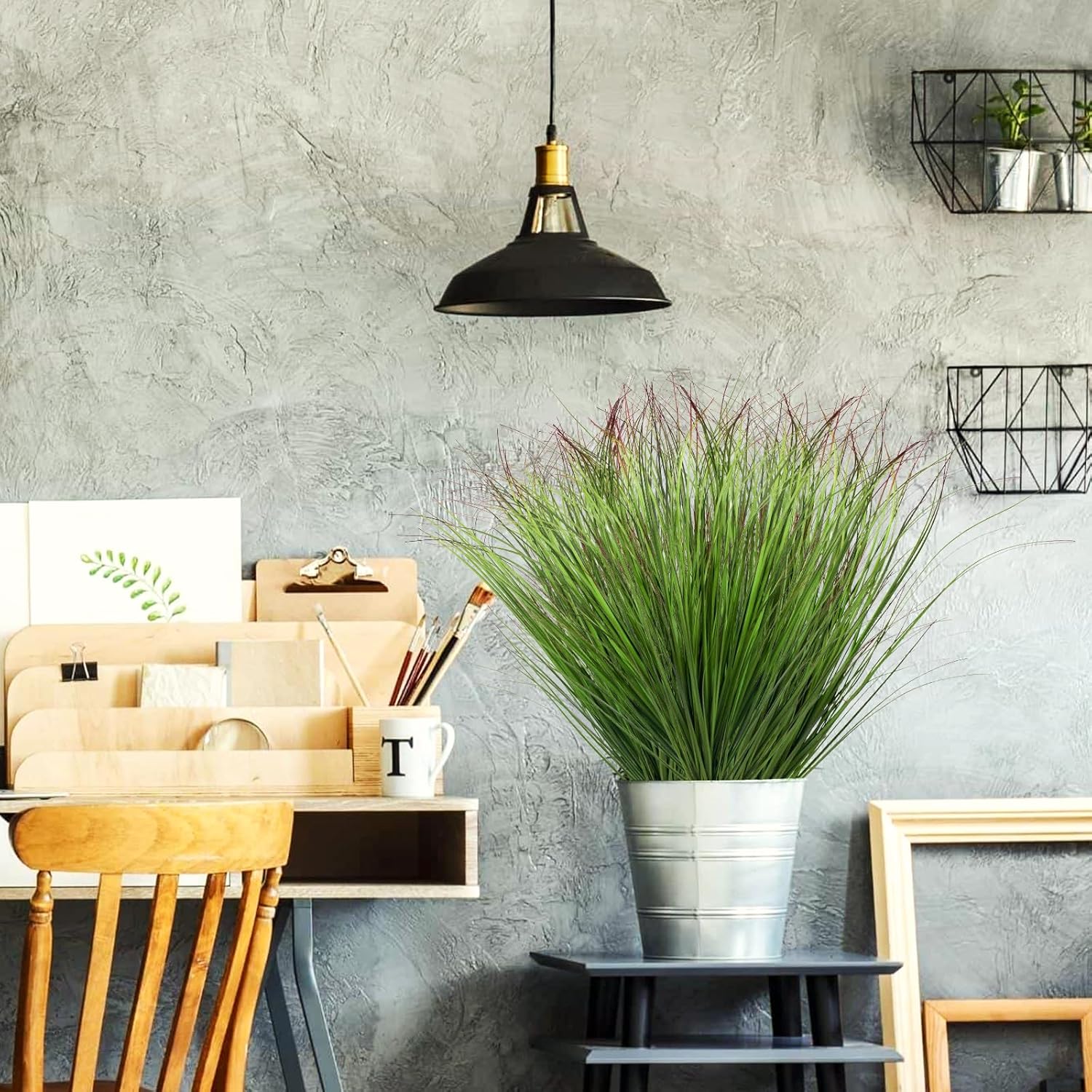 - 【VIVID FAKE GRASS STEMS】 Faux wheat grass is an ideal companion for indoor plants or rustic greenery. You don’t have to worry about mosquitoes brought by real grass. It resists UV rays and remains a vibrant green all year round and will keep a fresh look for years to come.