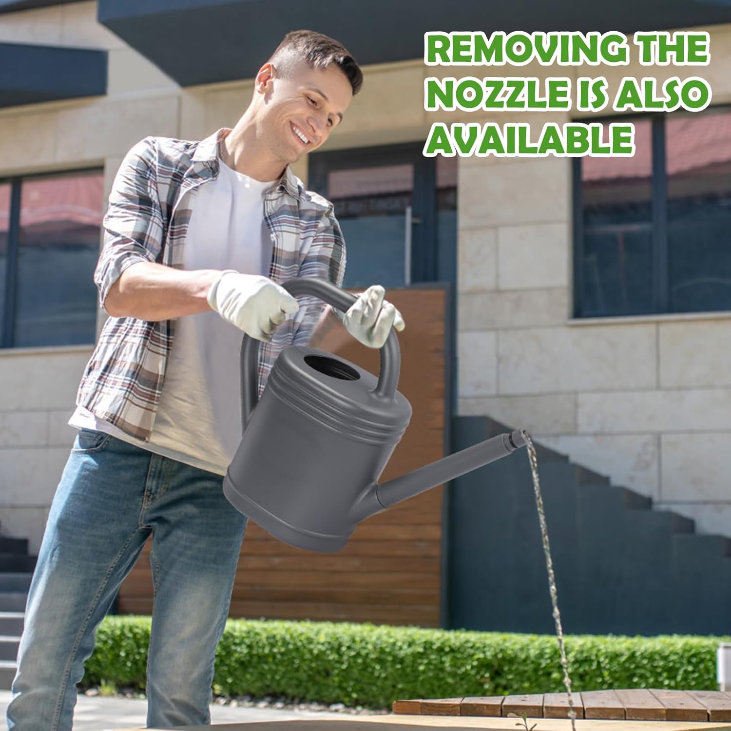 - UPGRADED DETACHABLE CONVERTIBLE NOZZLE: With the help of the watering can's detachable shower nozzle, you can water your hanging or wall-mounted plants with great ease. Indoor and outdoor plants benefit from its multipurpose design's ability to manage water flow more delicately and precisely.
