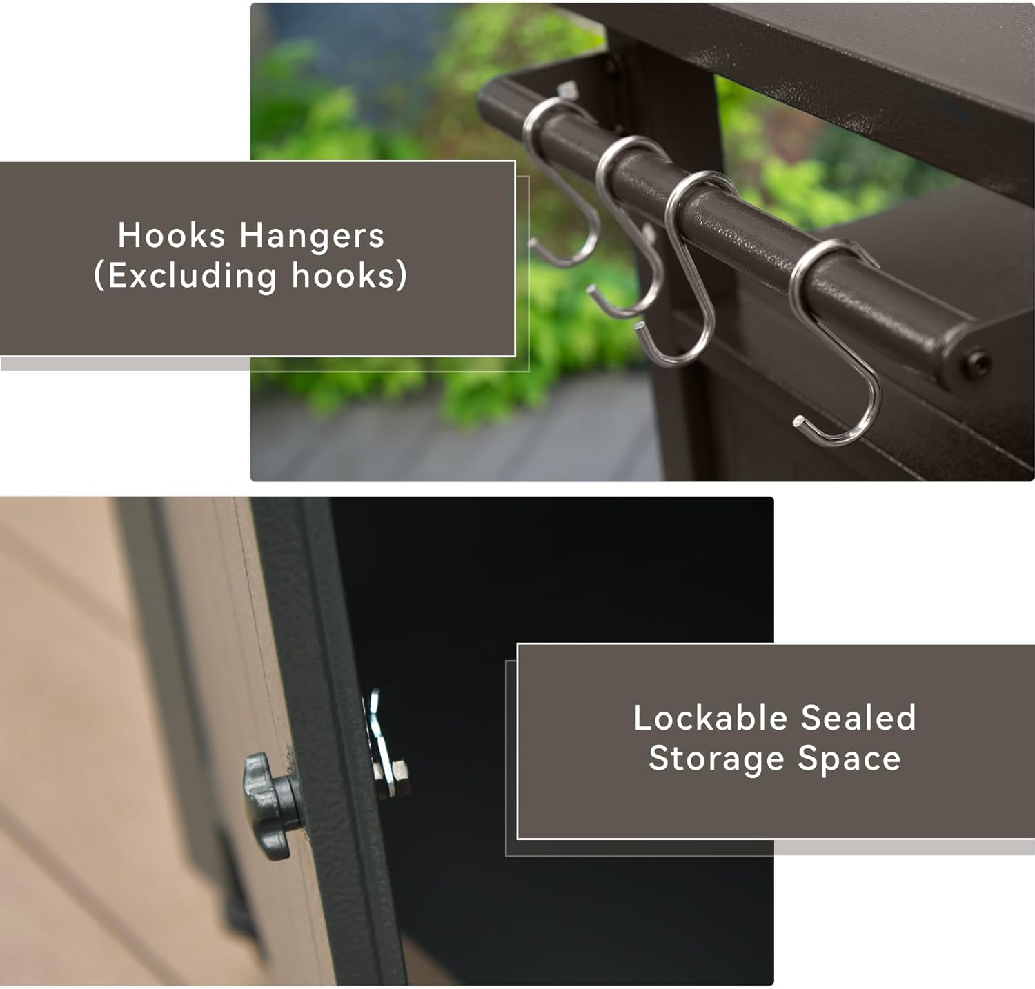 - Durable and Long-lasting -SHPAI outdoor grill cart is made of high-quality galvanized material with a powder-coated surface, offering excellent rust and corrosion resistance for long-term use. The grill table is also safe and non-toxic, ensuring peace of mind while using it. Additionally, its smooth surface makes cleaning easy, and it resists stains and scratches, keeping it looking new