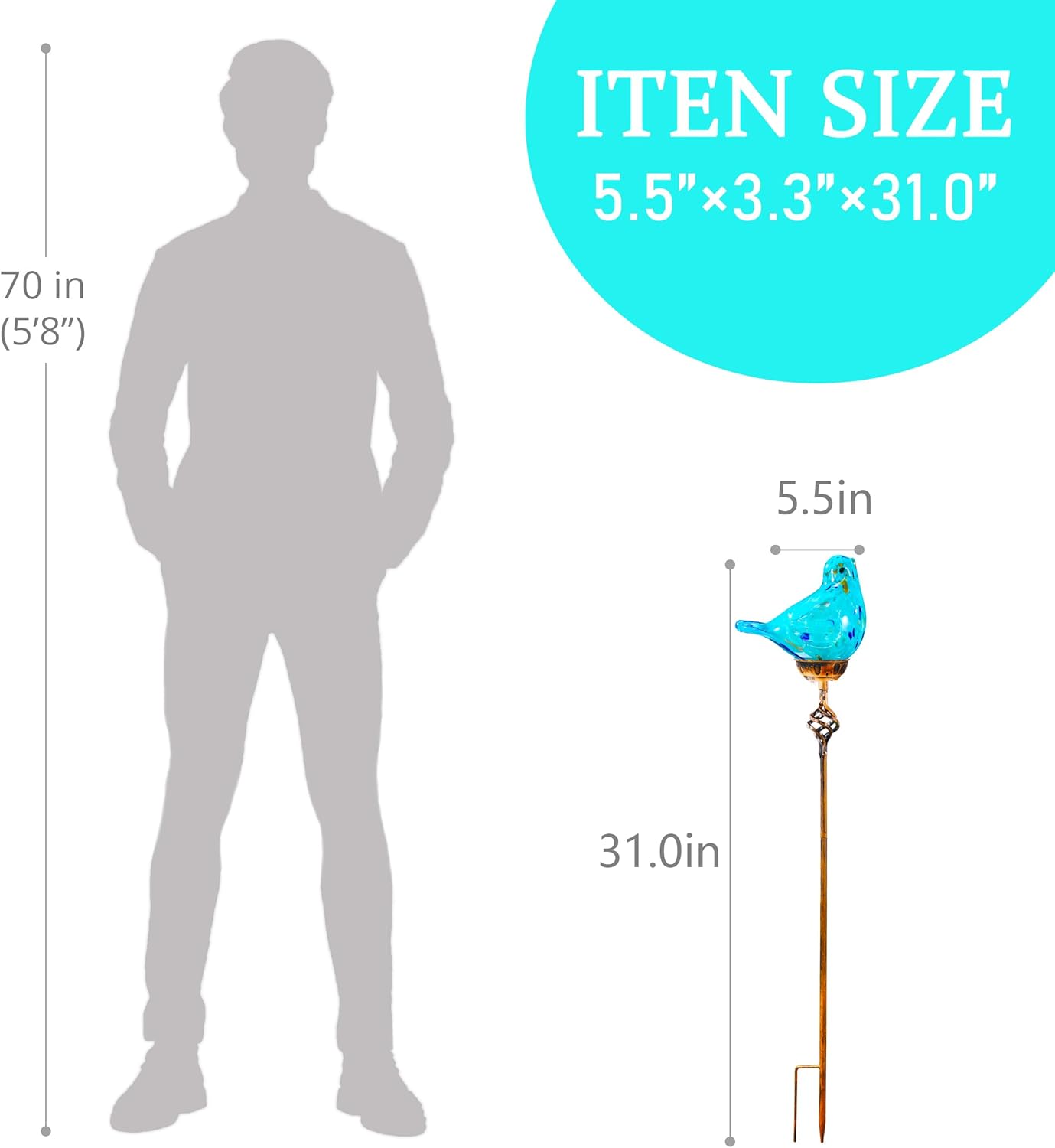 Decorative Solar Lights, Outdoor Solar Bird Stake Lights, Hand Blown Glass Decorative Garden Pathway Lights Outdoor Waterproof Glass Stakes (Light Blue)