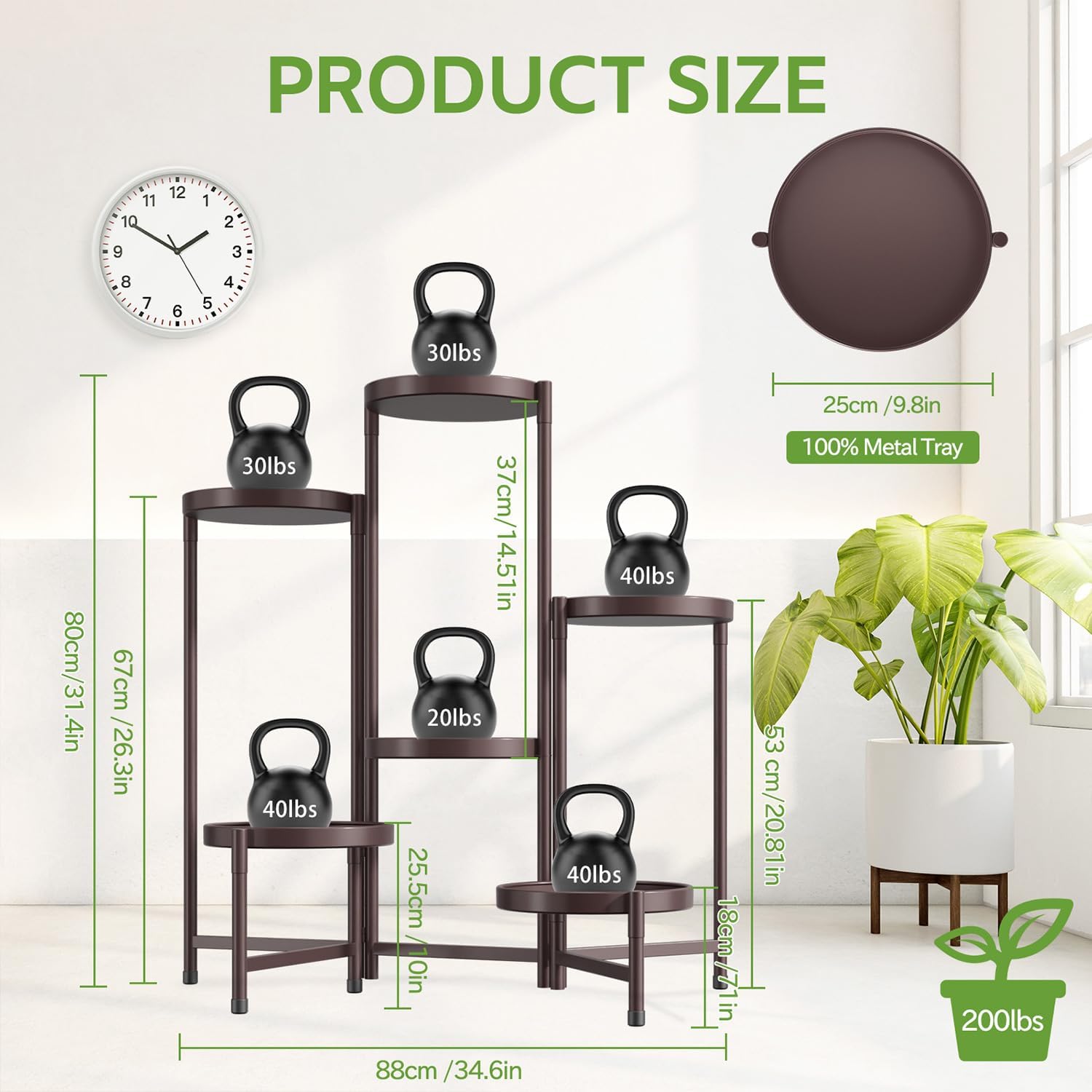 - 9.8 In Extra Wide Round Tray: This corner plant stands for indoor plants has been upgraded with an enlarged 9.8-inch diameter metal round tray with a total weight capacity of 156 lbs for large & heavy duty potted plants. The tiered plant stand is made of sturdy and durable iron with a waterproof and rustproof golden lacquer finish, making it suitable for indoor and outdoor use
