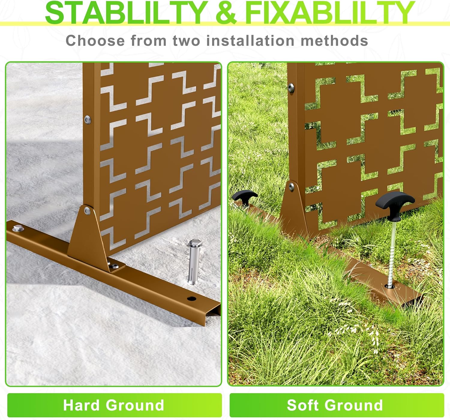- 【Robust Metal Build】The metal privacy screen boasts a robust construction crafted from high-quality galvanized steel. Designed to endure the rigors of outdoor elements, its sturdy build guarantees prolonged durability.
