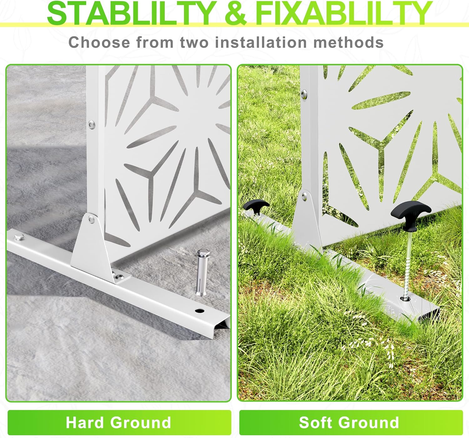 - 【Robust Metal Build】The metal privacy screen boasts a robust construction crafted from high-quality galvanized steel. Designed to endure the rigors of outdoor elements, its sturdy build guarantees prolonged durability.