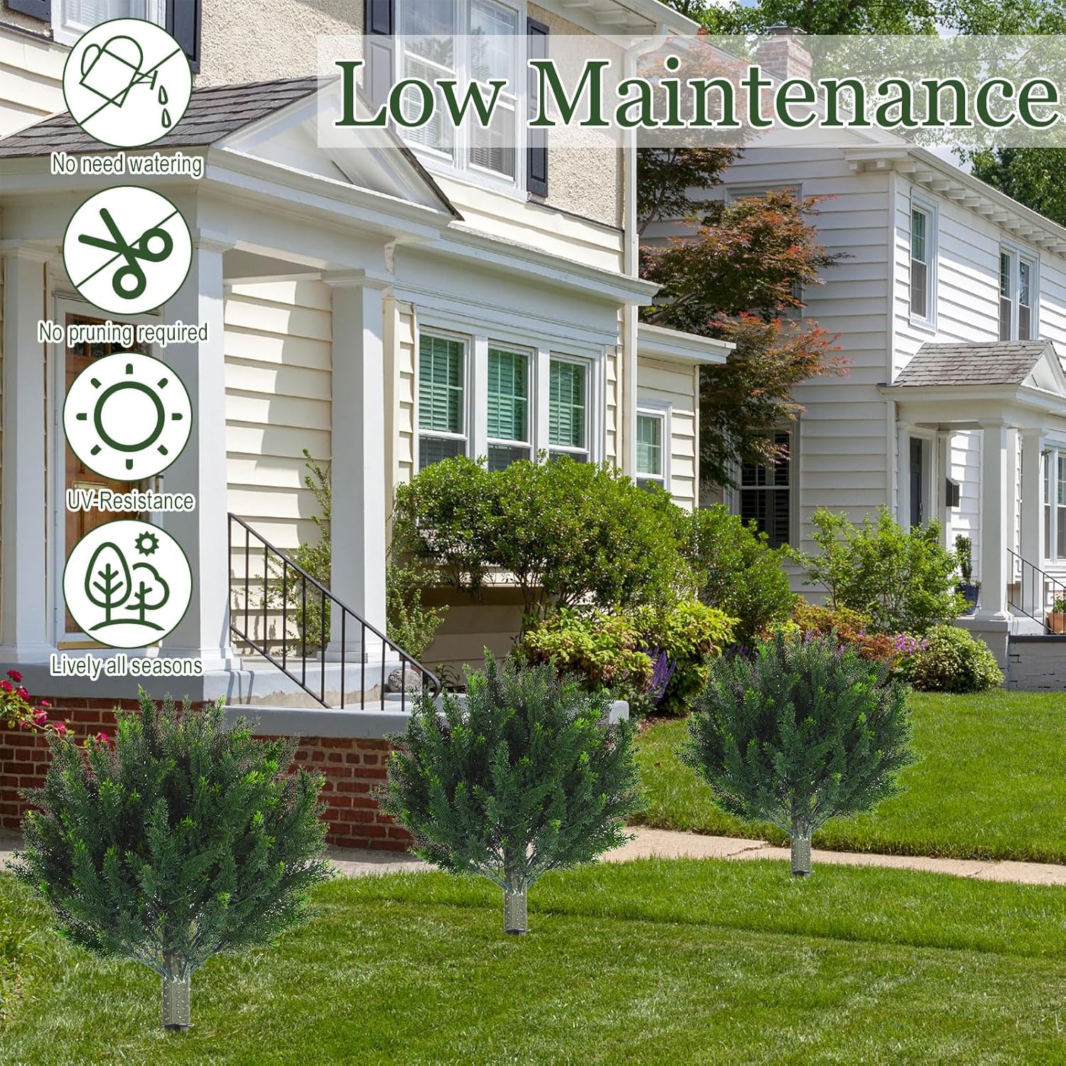 - UV Resistance: the fake bushes Cedar balls are UV resistant, will not fade in rain and sun, and will not deform under winds; This provides a lasting beauty, sturdy and long lasting, whether indoors or outdoors, such as garden, veranda, balcony, patio, front porch